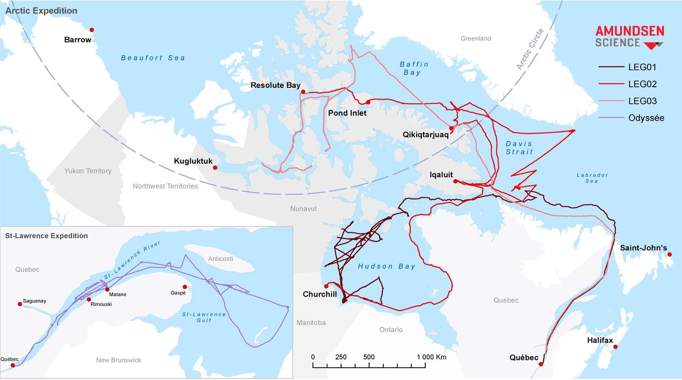Two significant expeditions were undertaken. The first, the Odyssée St-Laurent expedition, occurred within the St. Lawrence estuary, spanning from February 9th to 23rd. The second was the annual Arctique Expedition. On May 25th, the CCGS Amundsen left Québec City for a 128-day in the Hudson bay and the Canadian Arctic in support of several research programs. Among programs on board wereArcticNet annual marine-based research program, BaySys, a project that aims a better understanding of variability and change of freshwater-marine coupling in the Hudson Bay System, Vulnerable Marine Ecosystem ROV Program, Sentinel North BOND, BriGHT and PhD School projects as well as Fisheries and Oceans Canada (DFO).