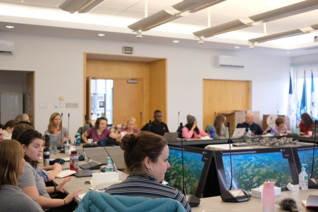 Tucked inland from Ungava Bay, Kuujjuaq is an Inuit village connected to the sea via the Koksoak river. Between October 15th and 20th, participants and experts engaged with various organizations and knowledge holders in Kuujjuaq, gaining valuable insights into local perspectives on Arctic development and sustainability. They met with representatives from key organizations such as Makivik Corporation, the Kativik Regional Government and the Nunavik Research Center. Common themes which emerged from these meetings were the need for research and reciprocity in the region, as well as respect for local knowledge and country foods.